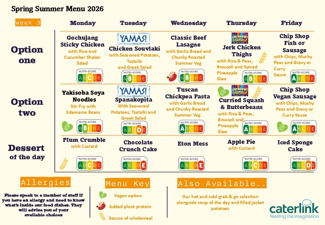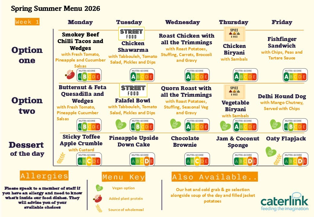 Home Parents » Useful Links » Menu Menu Menu Here are our menus that will be in place from April 2026. (Click the menus above for a larger version.) PCC TARIFF BOARD 2024